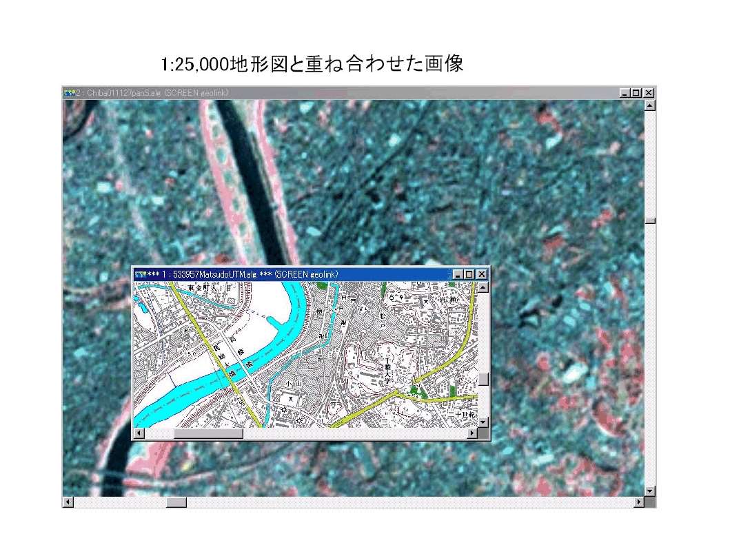 ・これを地図にぴったり重ね合わせるために幾何補正という作業が必要になります。 |