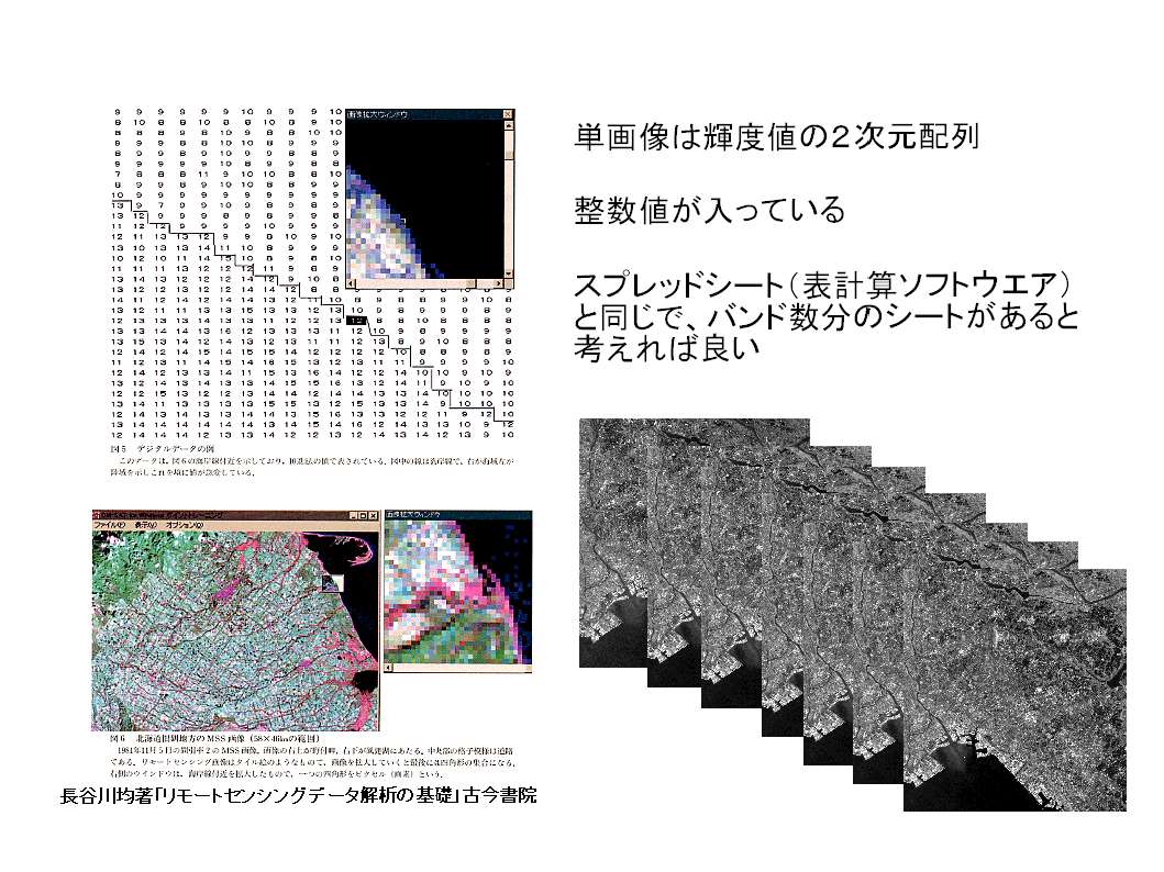 ・たくさんのバンド(波長帯)で撮影した衛星画像は、整数の2次元配列がたくさんあることになります。